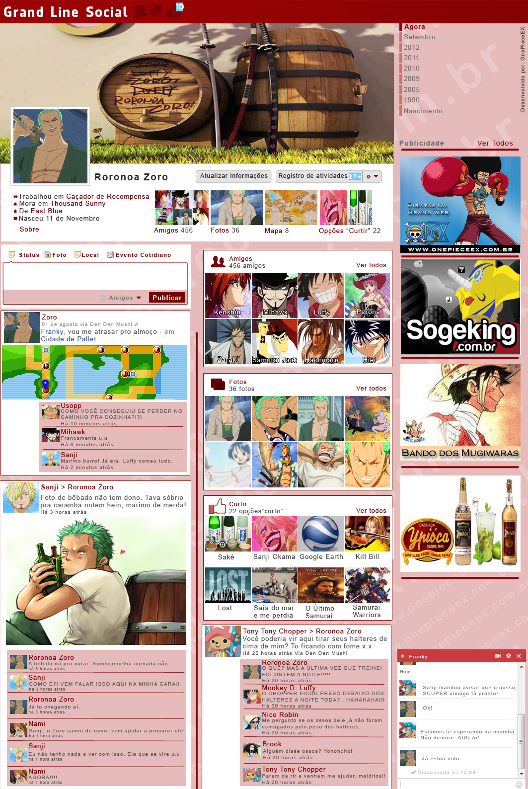 E se o Zoro tivesse um perfil em uma rede social? É com muito orgulho que apresento a vocês o Grand Line Social do Zoro!